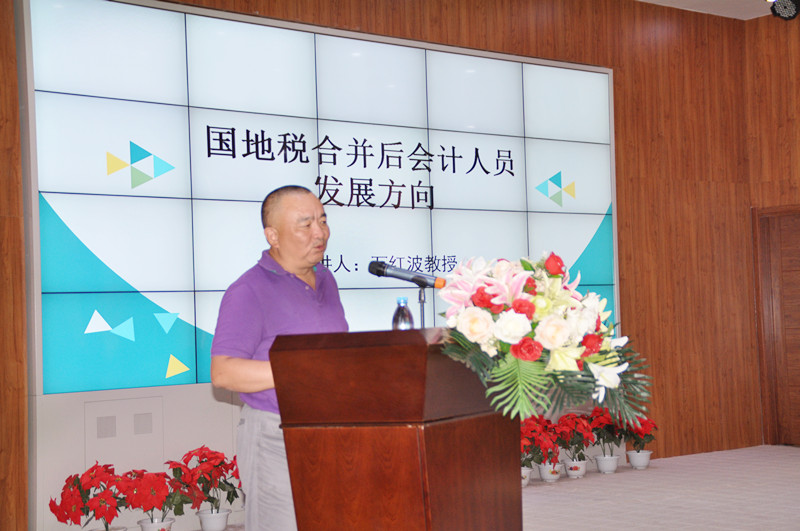 全国会计领军人才、兰州大学教授及硕士研究生导师、澳大利亚国家职业会计师(IPA)、中国资深注册会计师、甘肃省注册会计师协会常务理事万红波教授则以“国地税合并后会计人员发展方向”为主题,通过对“税务改革”“国地税合并的影响”“十大重大会计变革”的阐述与分析,指出了目前税收政策及发展背景下会计人才需求的变化及会计人员的发展方向,万教授强调,由于大数据时代的到来,需要财务人员不断提升自身素质,改变传统的工作方式,充分利用企业的会计信息技术,为企业未来的经济活动进行有效的预测和分析。